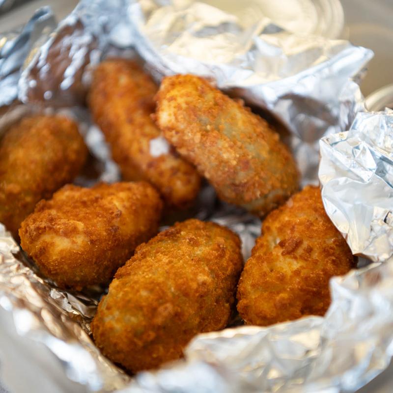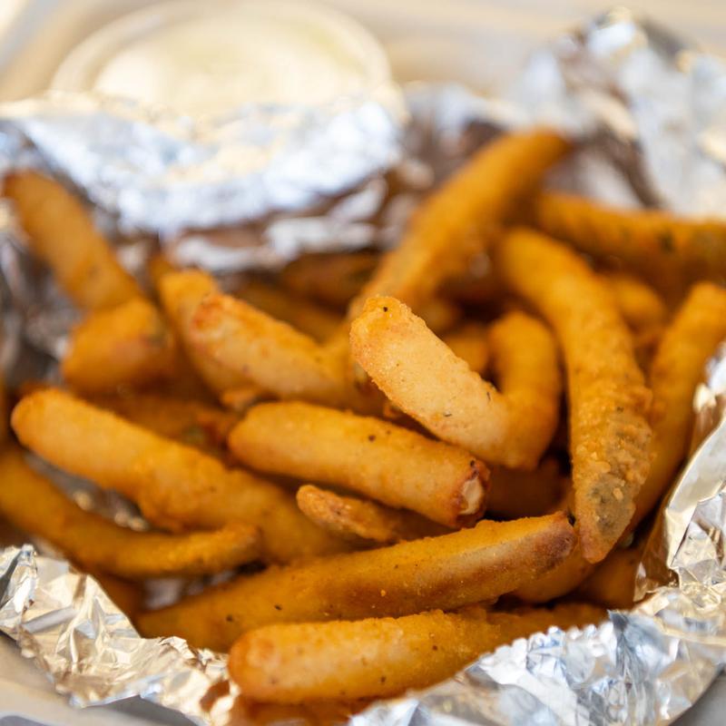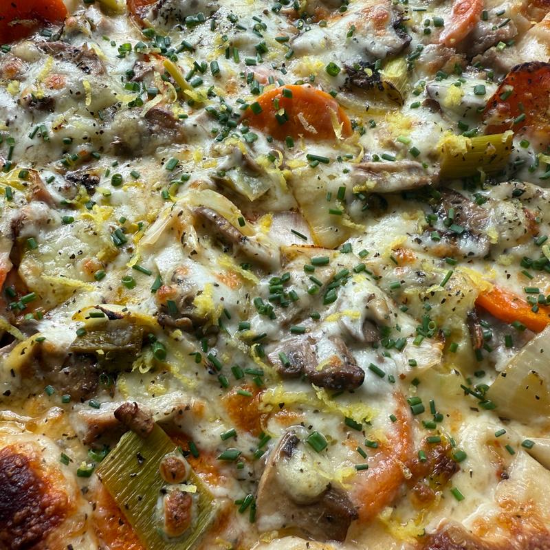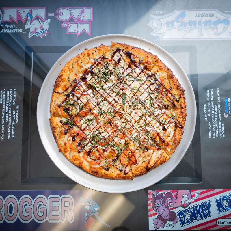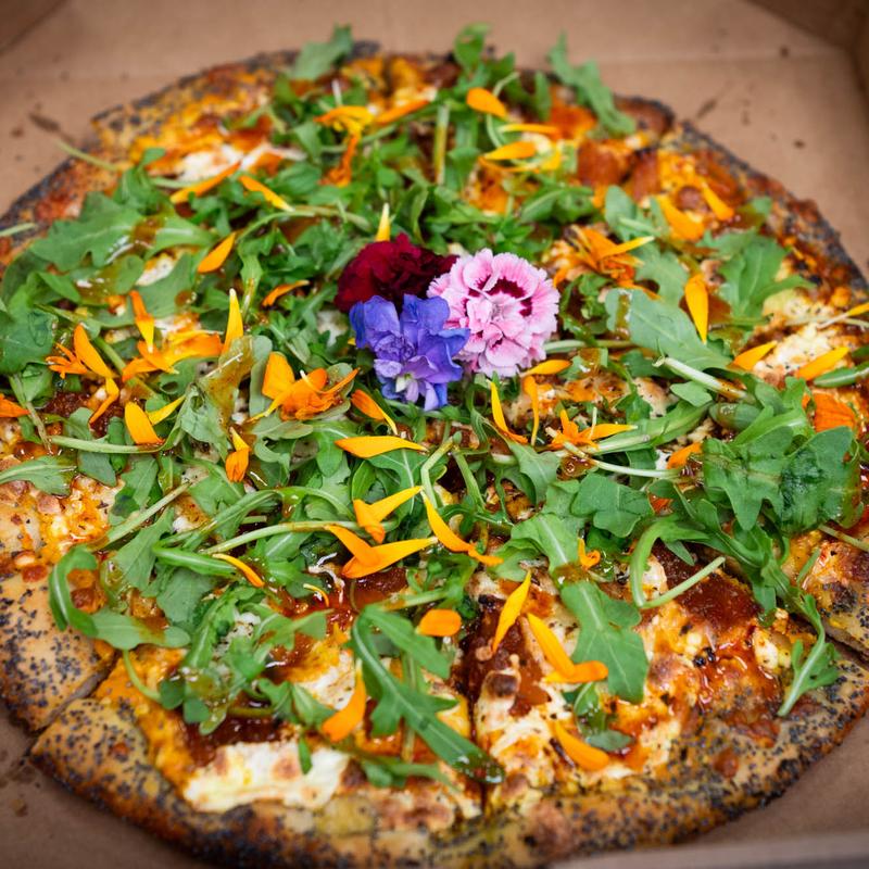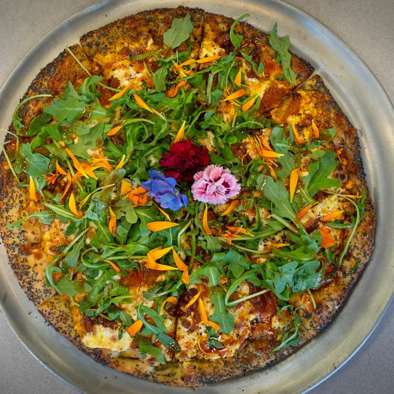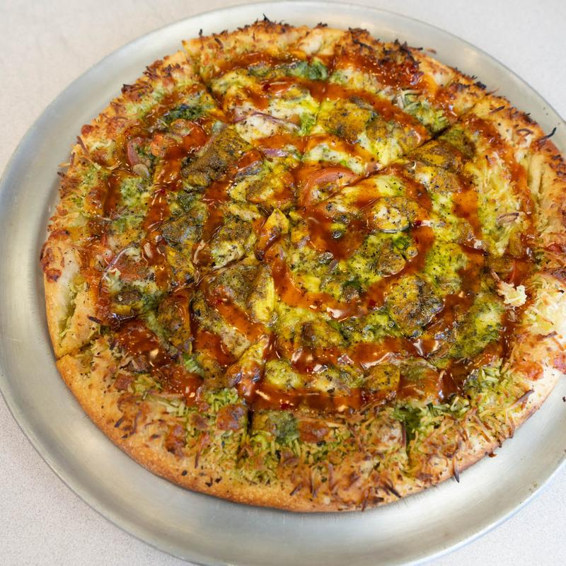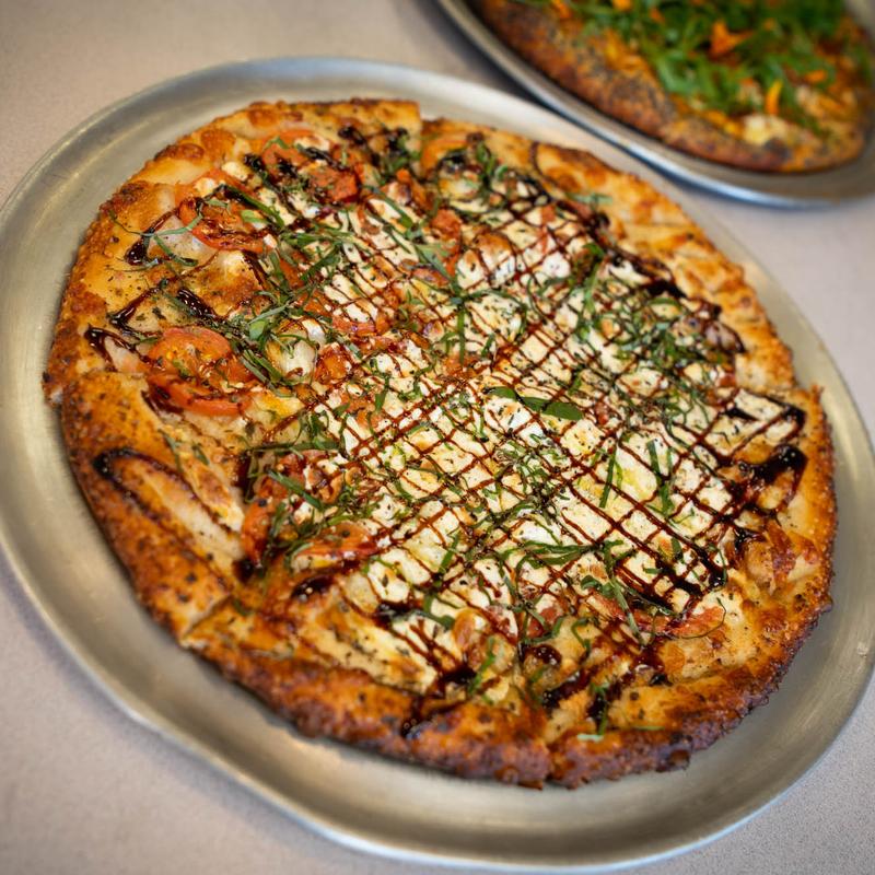 We got the buffalo wings and added chicken to the moon pie pizza. The pizza was delicious and we loved the parmesan crust. The wings stayed crispy because they put the buffalo sauce on the side...